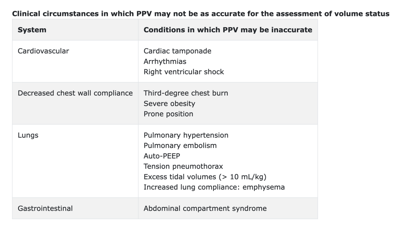 For PPV or SVV to be valid for the prediction of fluid responsiveness, various conditions must be met: