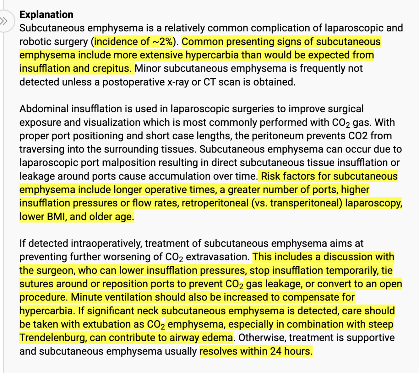 Subcutaneous ephysema after abdominal insufflation most commonly present with…