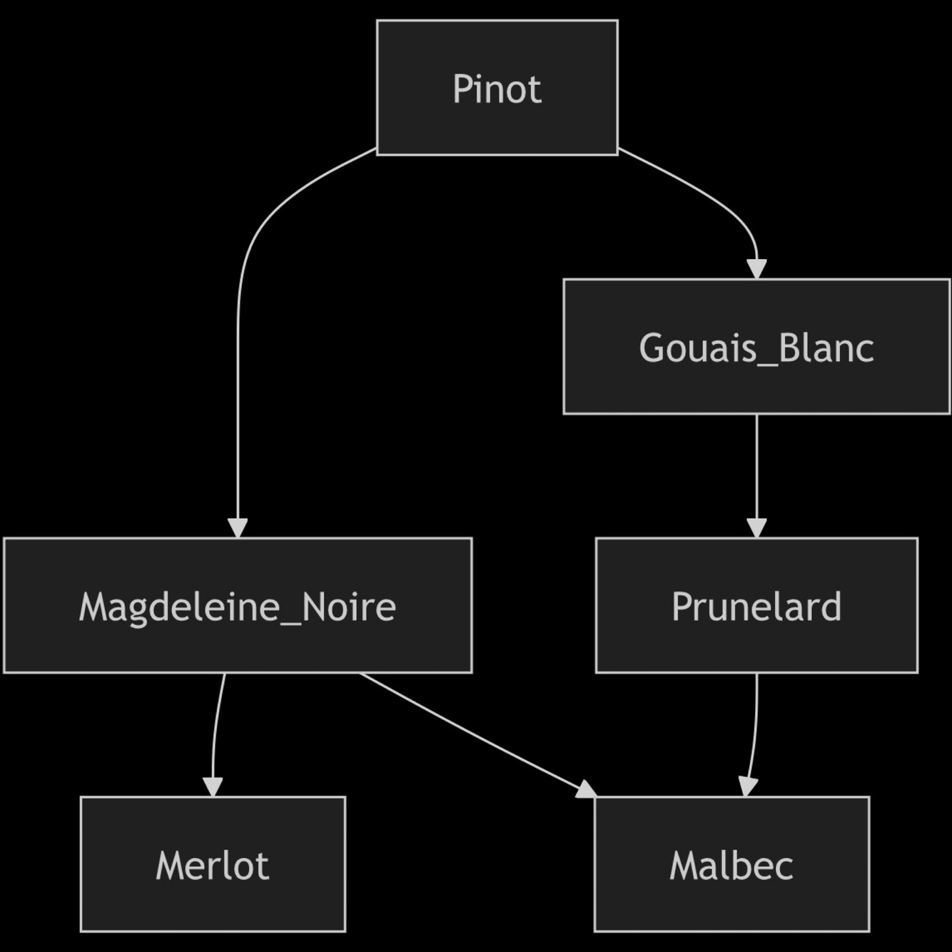 Magdeleine Noire des Charentes was from Cognac & Charentes region in France (nearly extinct), and Prunelard was from Gaillac and Fronton regions in southwest France