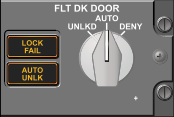Locks door with DC bus No. 2 powered. Allows entry from the cabin in the event of an emergency such as incapacitation.