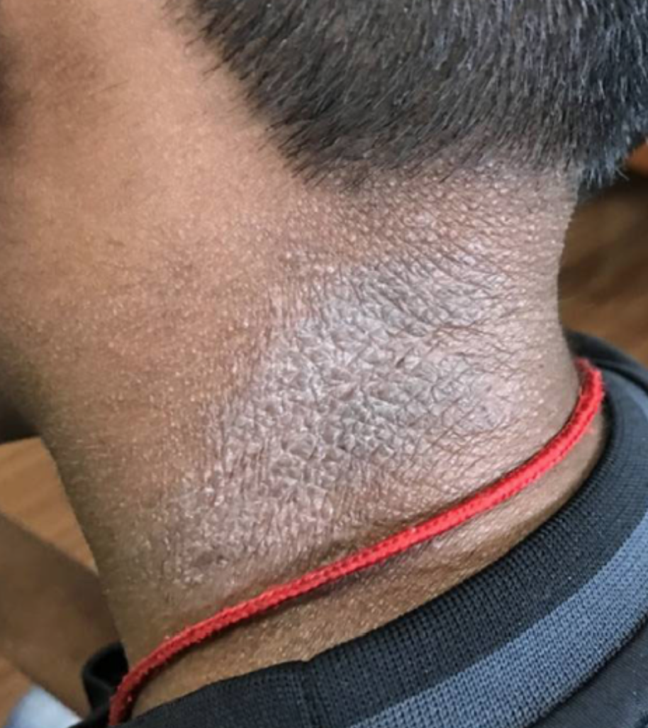 causes dry skin and pruritis and can appear lichenified