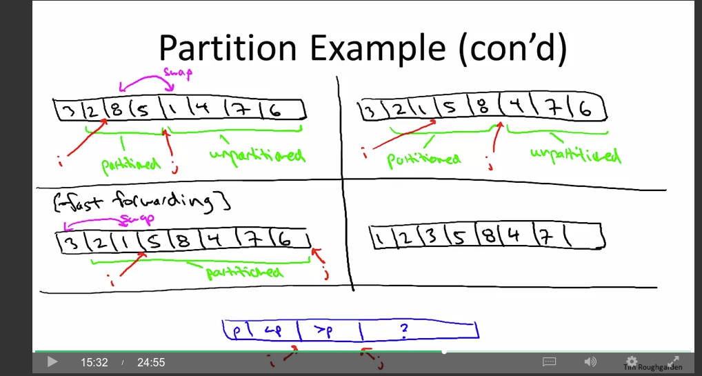 Partition (around a pivot): what is the running time? what about memory