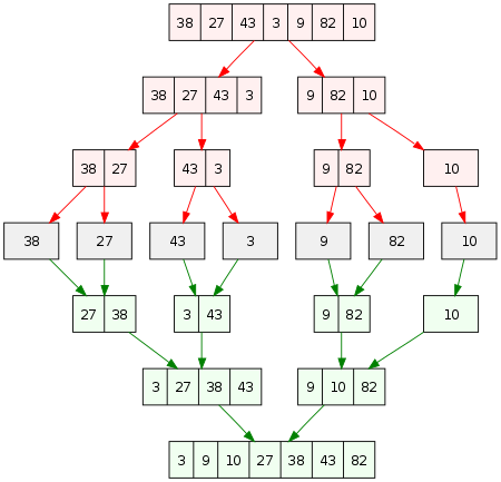 Like QuickSort, Merge Sort is a Divide and Conquer algorithm. It divides input array in two halves, calls itself for the two halves and then merges the two sorted halves. The merge() function is used for merging two halves. The merge(arr, l, m, r) is key process that assumes that arr[l..m] and arr[m+1..r] are sorted and merges the two sorted sub-arrays into one. See following C implementation for details.