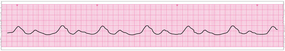 It is characterised by the presence of slow, irregular, wide ventricular complexes, often of varying morphology. These are unlikely to produce a pulse.