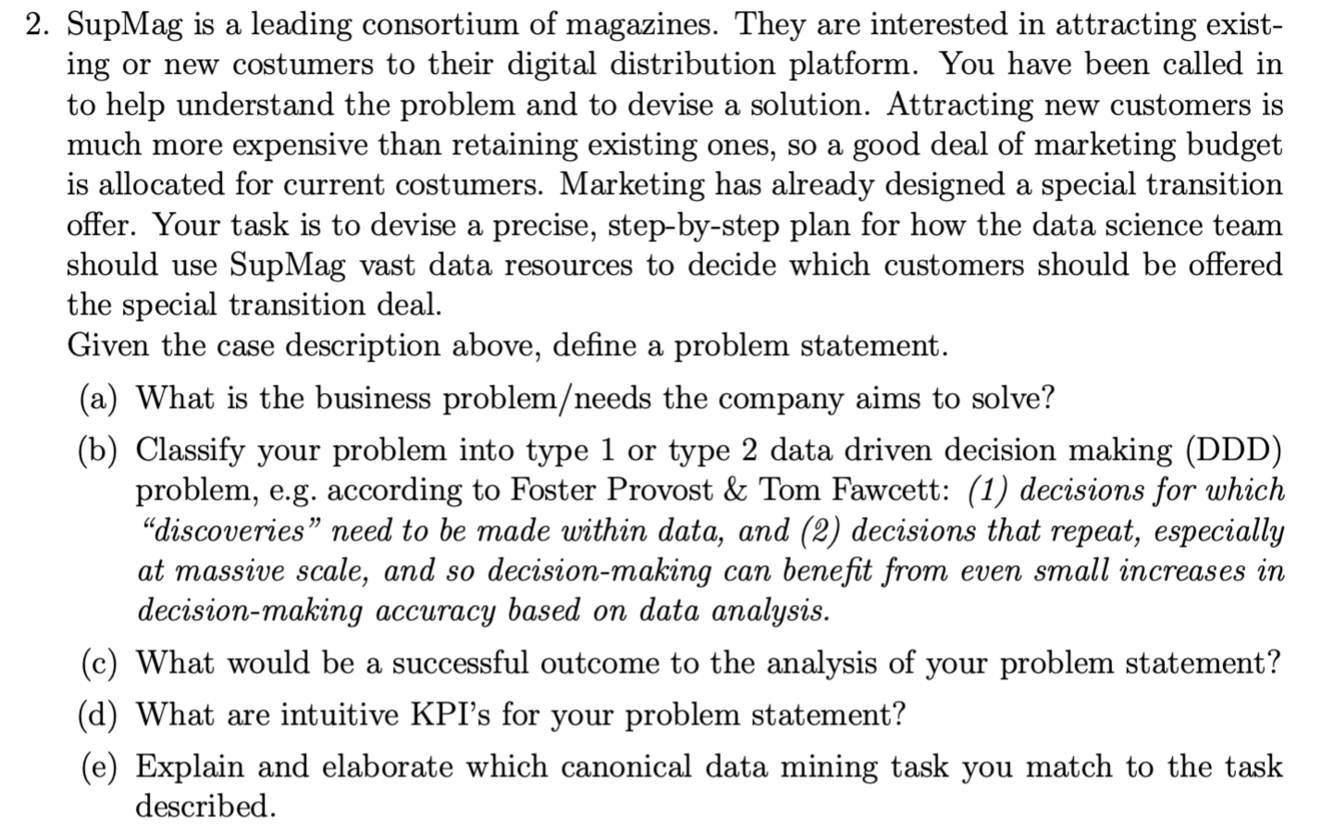 The new digital subscription will be rolled out to thecustomers for a weekly distribution at a cost of $50 a year. The current value of thepaper magazine is $60 per year. The marketing team has estimated that targeting acustomer will have a cost of $2 and in addition will incur the cost of a one year discountof 10% of the value of the subscription.