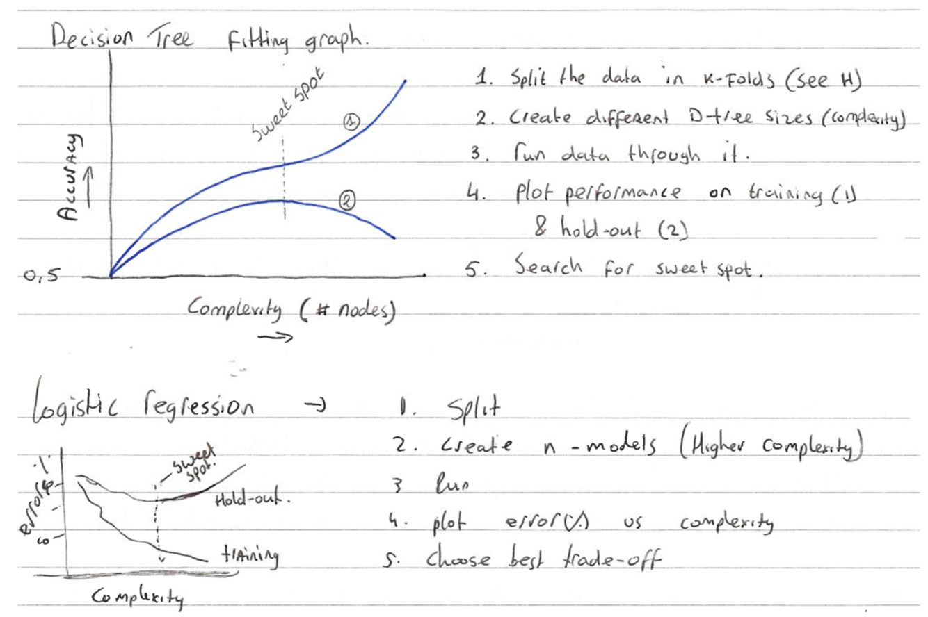 Explain in detail the steps to build a fitting graph for a decision tree and for alogistic regression classification model.