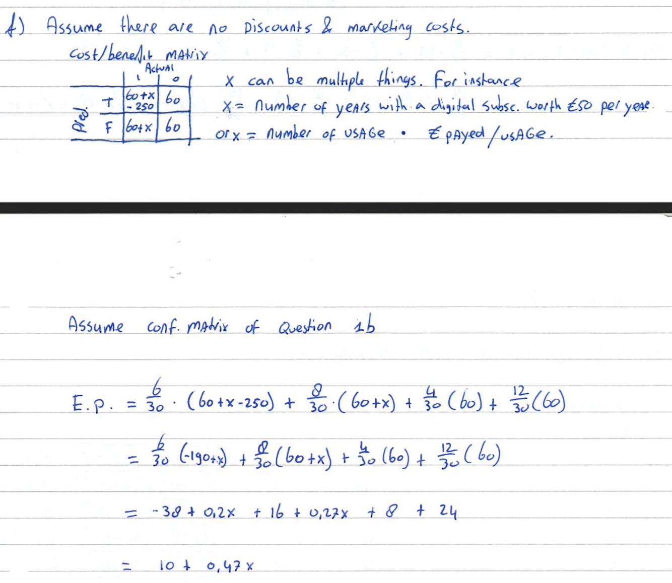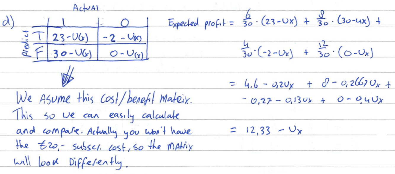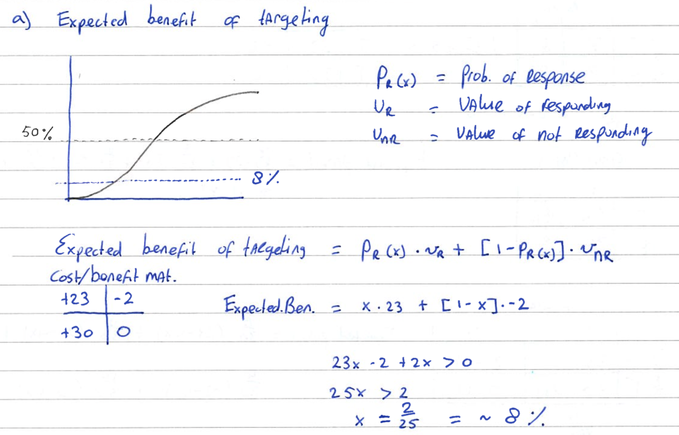 Considering the pay per use, write down an equation to calculate the expectedprofit, which explicitly considers both the probability of response for costumerx(p(R|x)) and the costumer usage (u(x)).