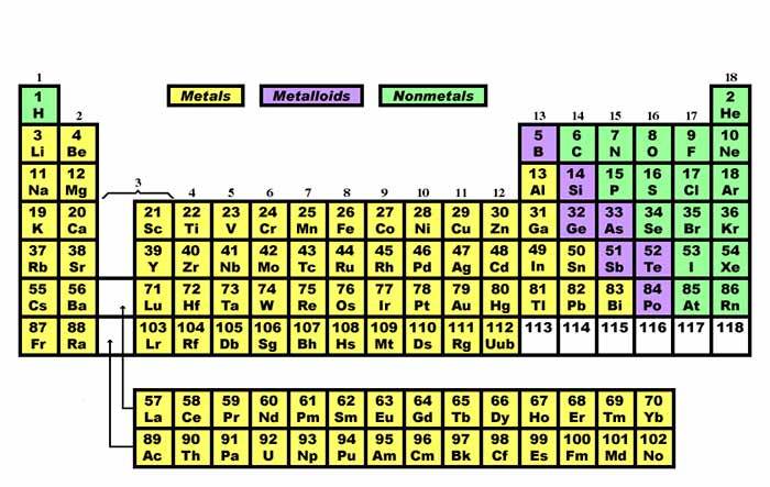 What are metalloids and where are they on the table