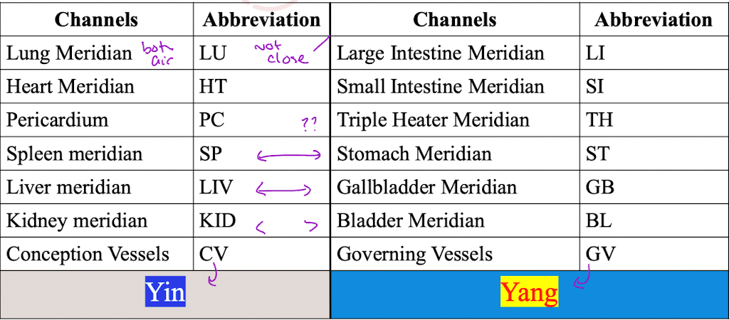 what are the yin yang meridian pairs