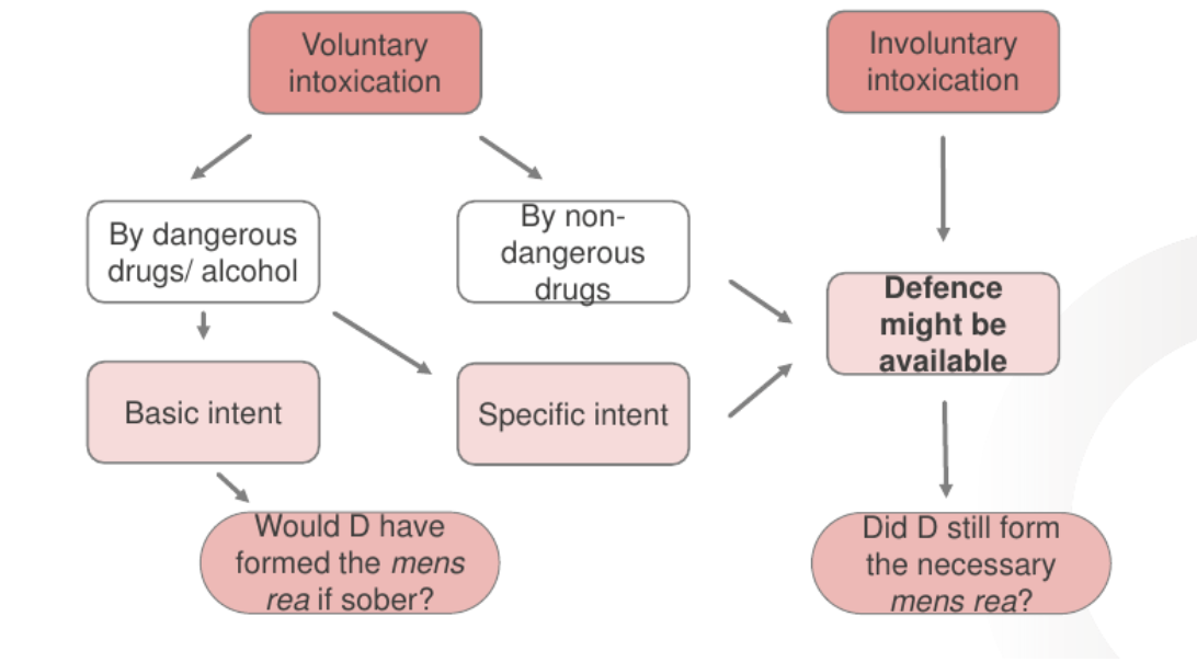 Evidential burden on D to raise intoxication, then P’s job to prove BRD that D formed necessary MR