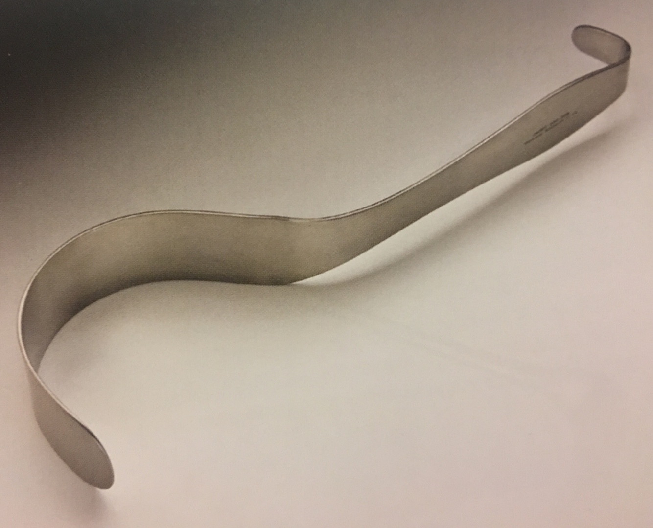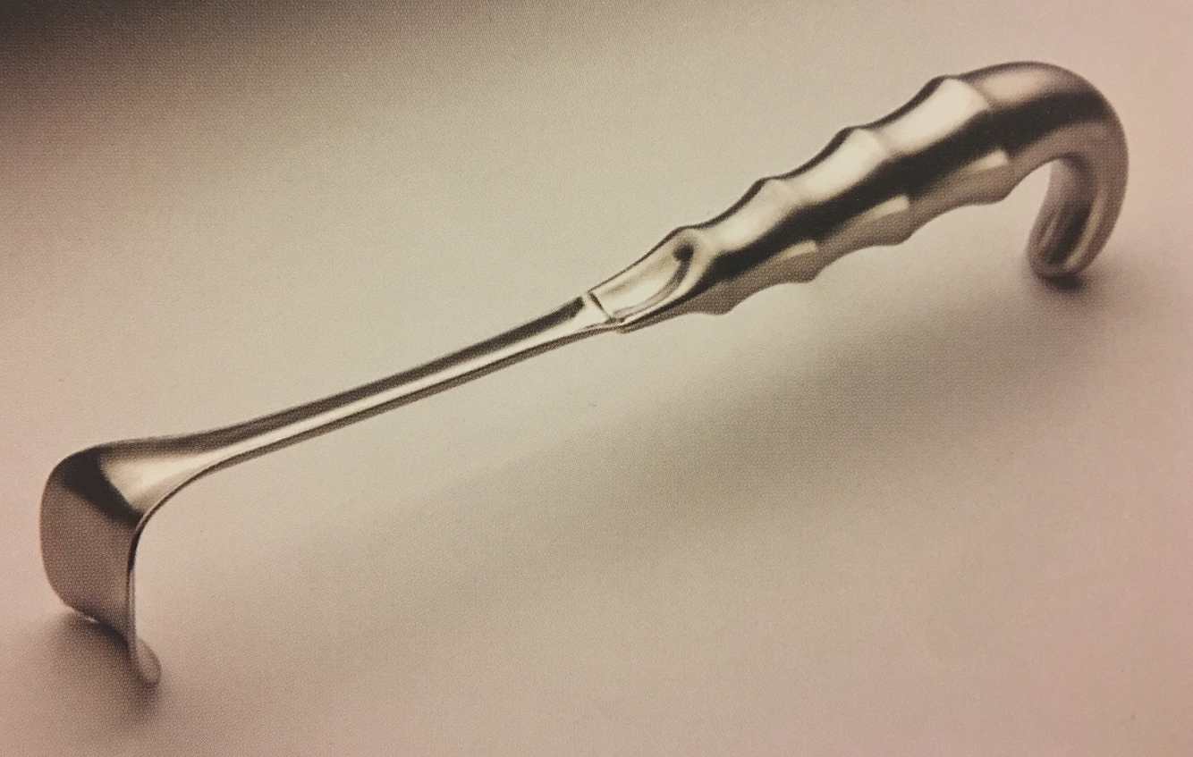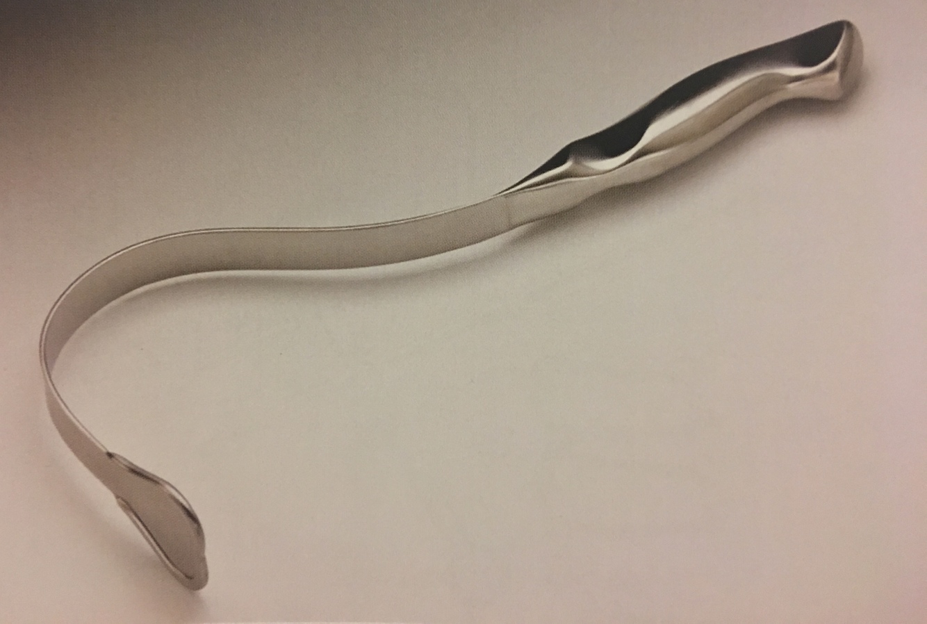 Has a grip handle and the end of the blade enlarges into a heart shape. The heart shape tip is overlaid with a smooth ridge to decrease the chance of injury to an organ.
