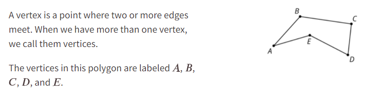 A is _______ a point where two or more edges meet. When we have more than one, we call them _______.