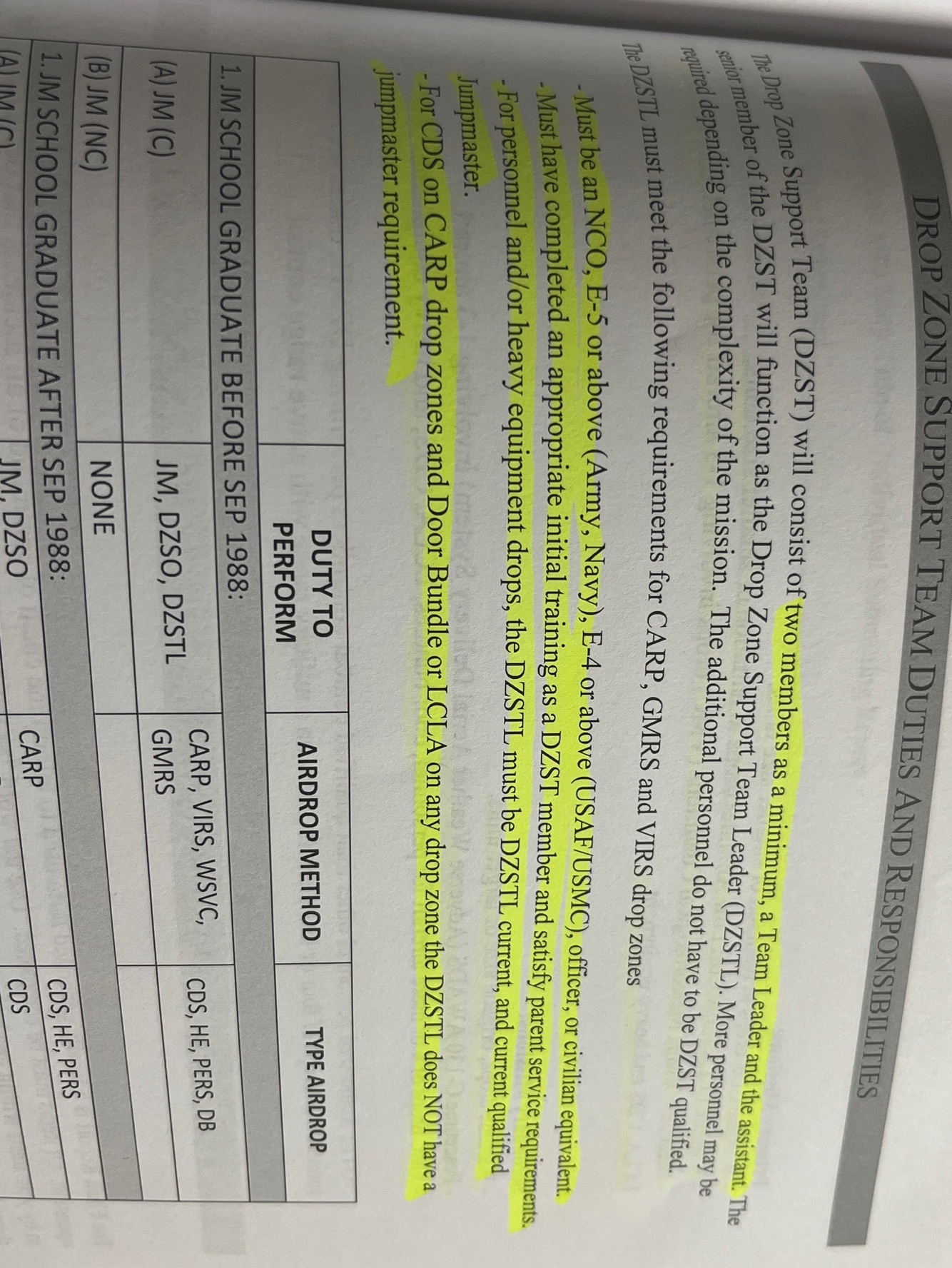 DZSTL MUST MEET WHAT REQUIRMENTS FOR CARP, GMRS, and VIRS DROPS