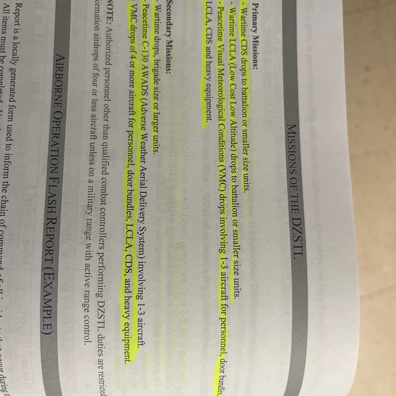 HIGH VELOCITY, free drops, AWADS: off the drop zone but still observed POI