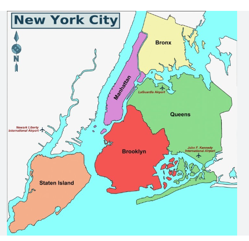 Bronx, Brooklyn, Manhattan, Queens, and Staten Island.