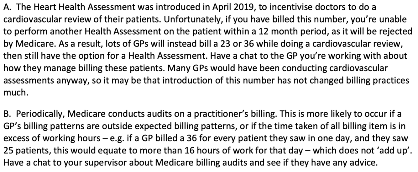 Depending on the indication for scanning, different MBS billing codes will be used. See two examples summarising billing codes here. Compare and contrast each summary.