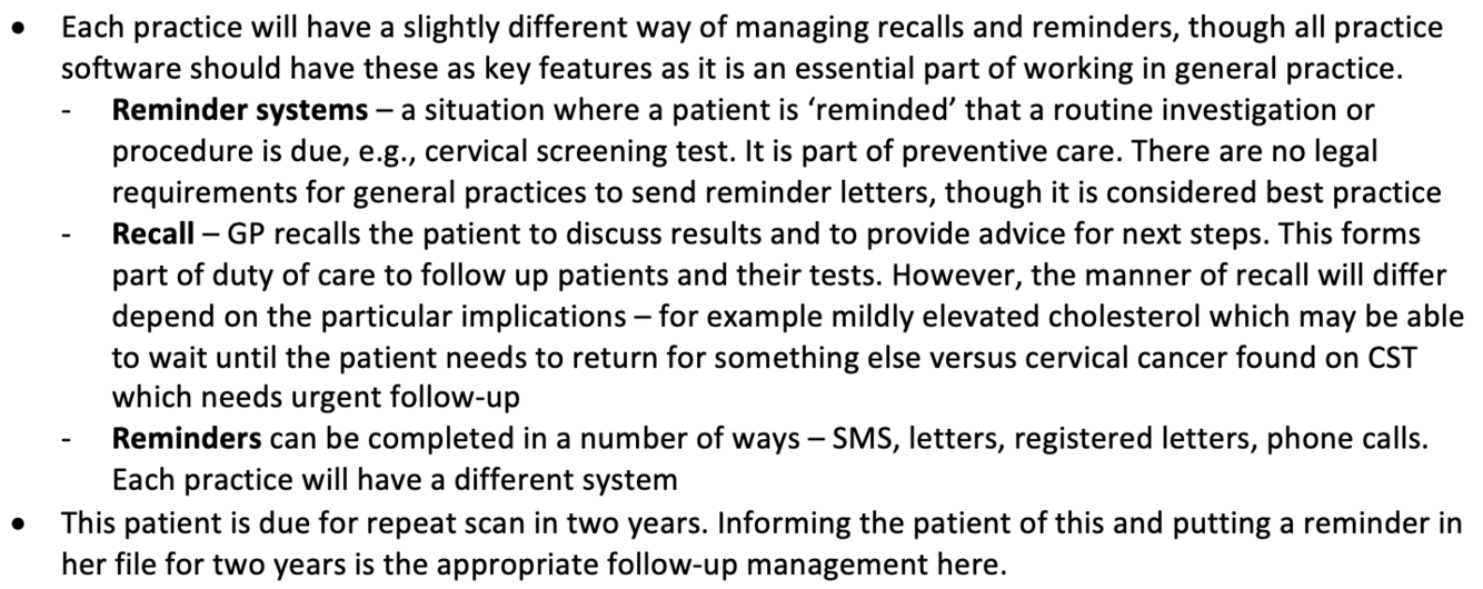 Discuss practice software recall and reminder systems, and what you would recommend for this patient.