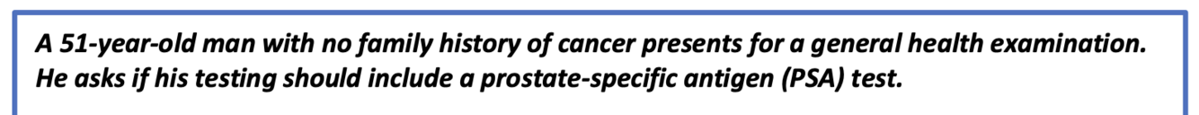 Refer to the resources below to inform yourself about the options available to this patient. How would you counsel this man in answer to his question about the PSA test? It is a good idea to practice this conversation with your peers as well as non-medically trained friends or family.