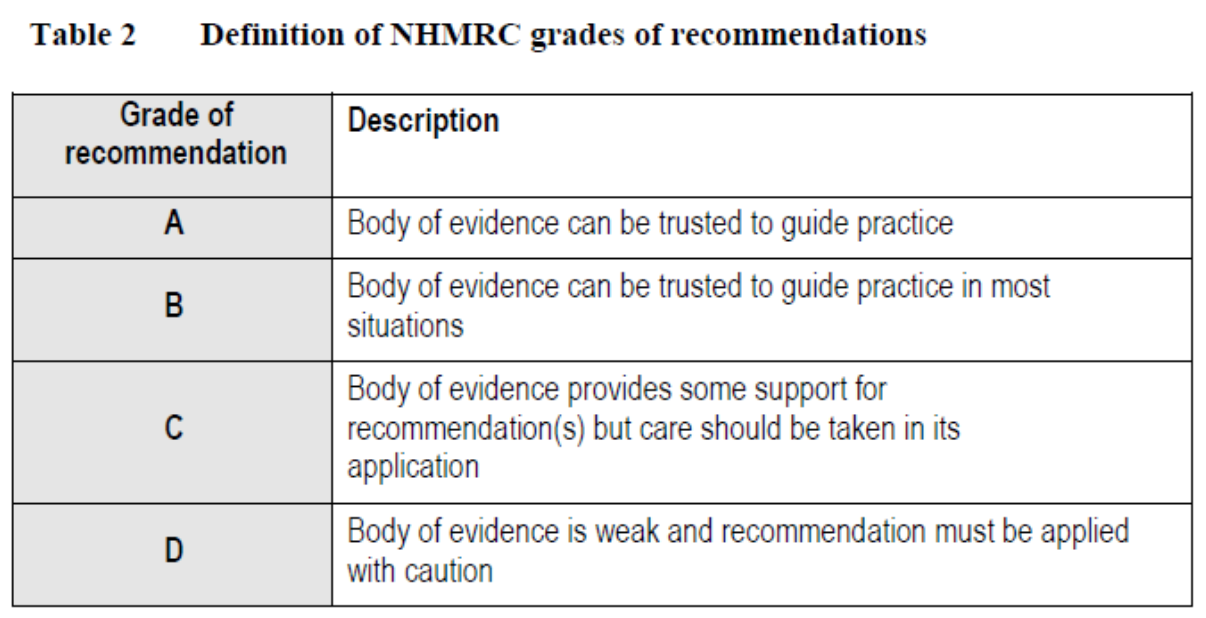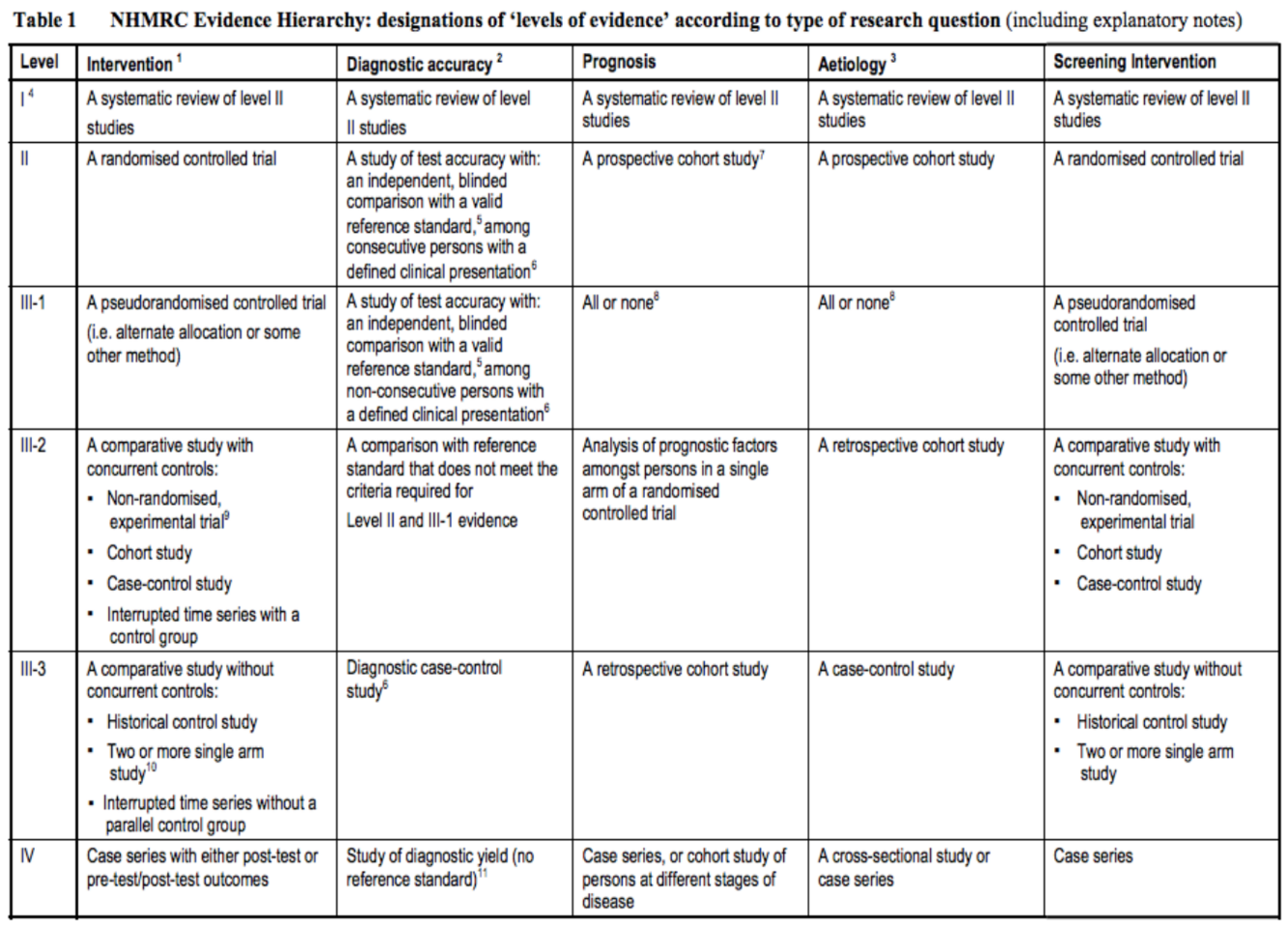 What are the levels of evidence and strengths of recommendations used to classify research outcomes?