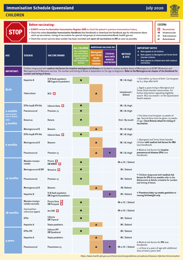 What is the australian childhood immunization schedule? Ages, Antigens, routes comments