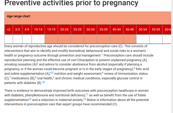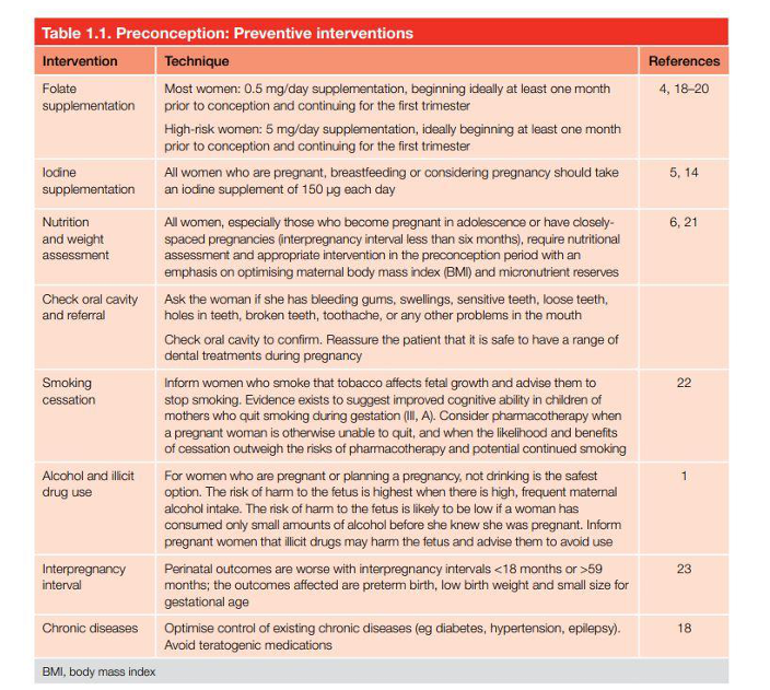 Outline preconception Preventive interventions - e.g folate, iodine,