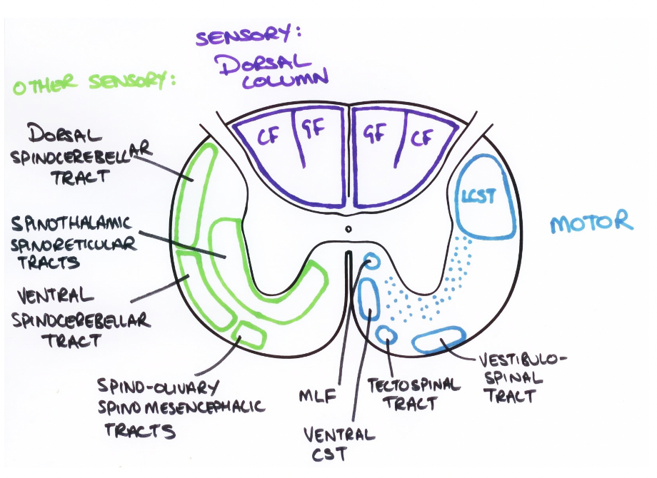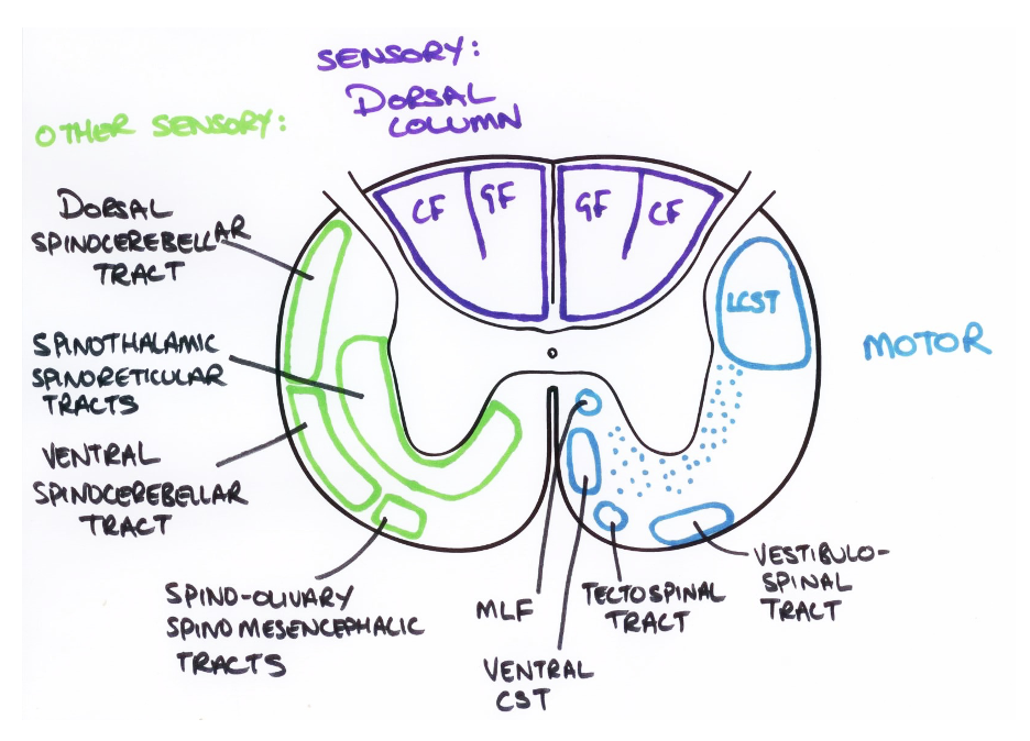 How can spinal white matter be organised?