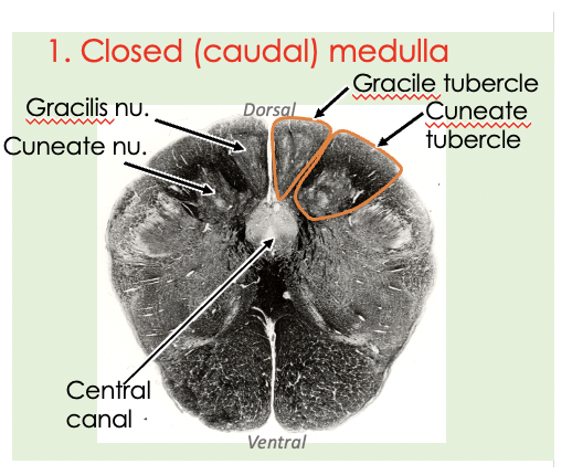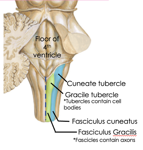 What are the gracile and cuneate tubercles and where are they located?