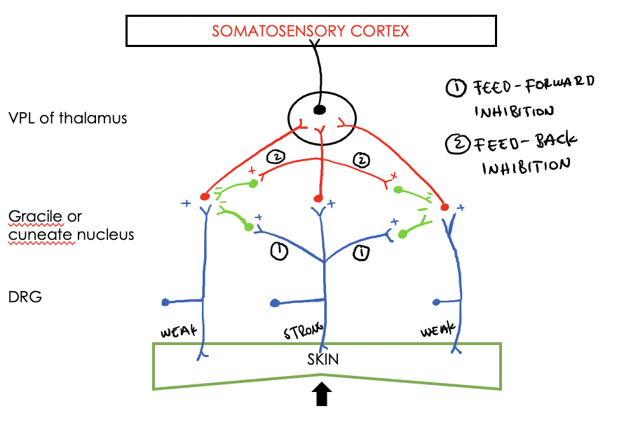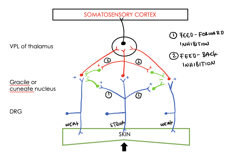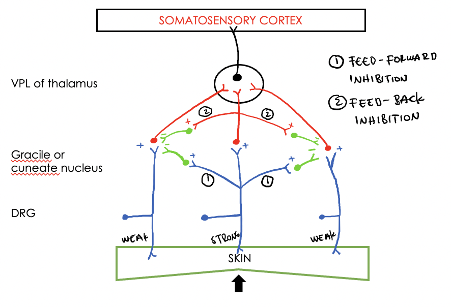 What are the 3 types of neurone involved in enhancement of discrimination?