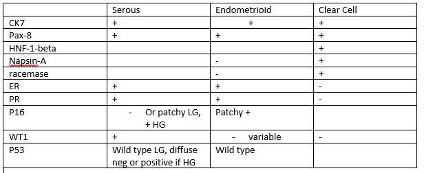 IHC for serous, endometrioid, and clear cell carcinoma.