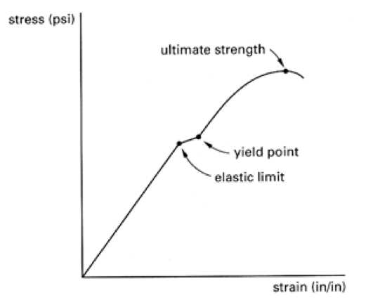 The yield point is when the material continues to deform with little to no load applied. It’s the point of no return…because after that the material will rupture once it hits its ultimate strength.