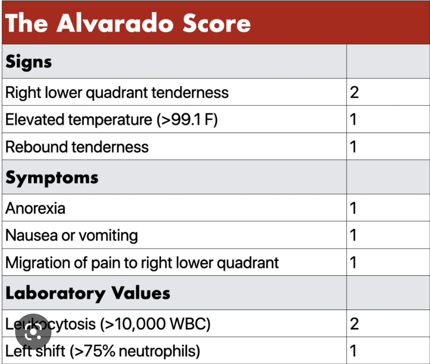 Scoring system for Appendicitis