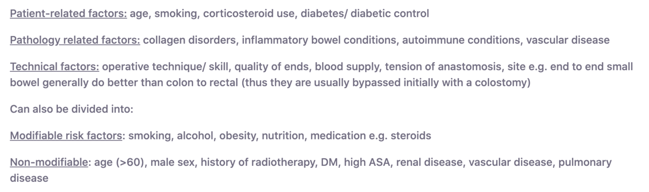 Risk factors for anastomotic leak