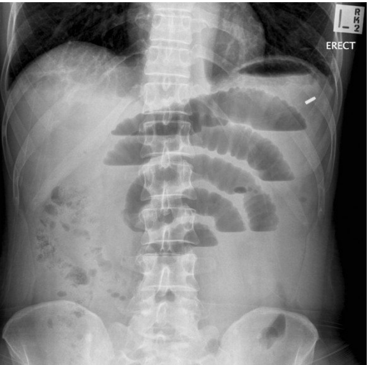 * dilated small bowel loops