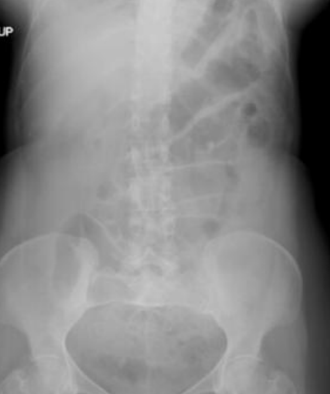 * air fluid in lower loop suggesting obstruciton