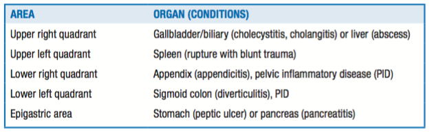 Cholecystitis - inflammation of the gallbladder; usually caused by gall stones; presents with Charcot triad: (1) RUQ pain, (2) fever or rigors, and (3) jaundice. Managed with cholecystectomy