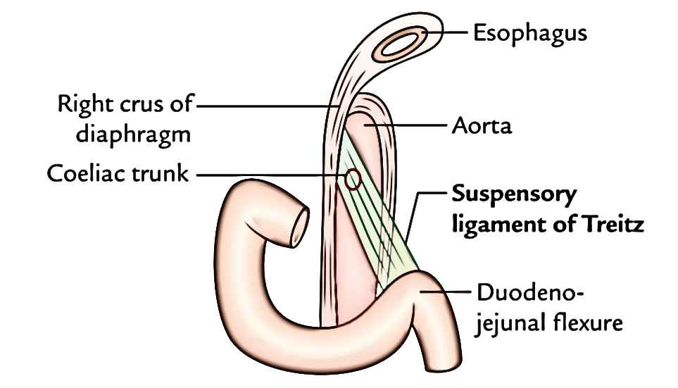 It is found at the duodenojejunal flexure. It marks the boundary between the first and second parts of the small intestine and is the formal boundary between the upper and lower GI tracts.