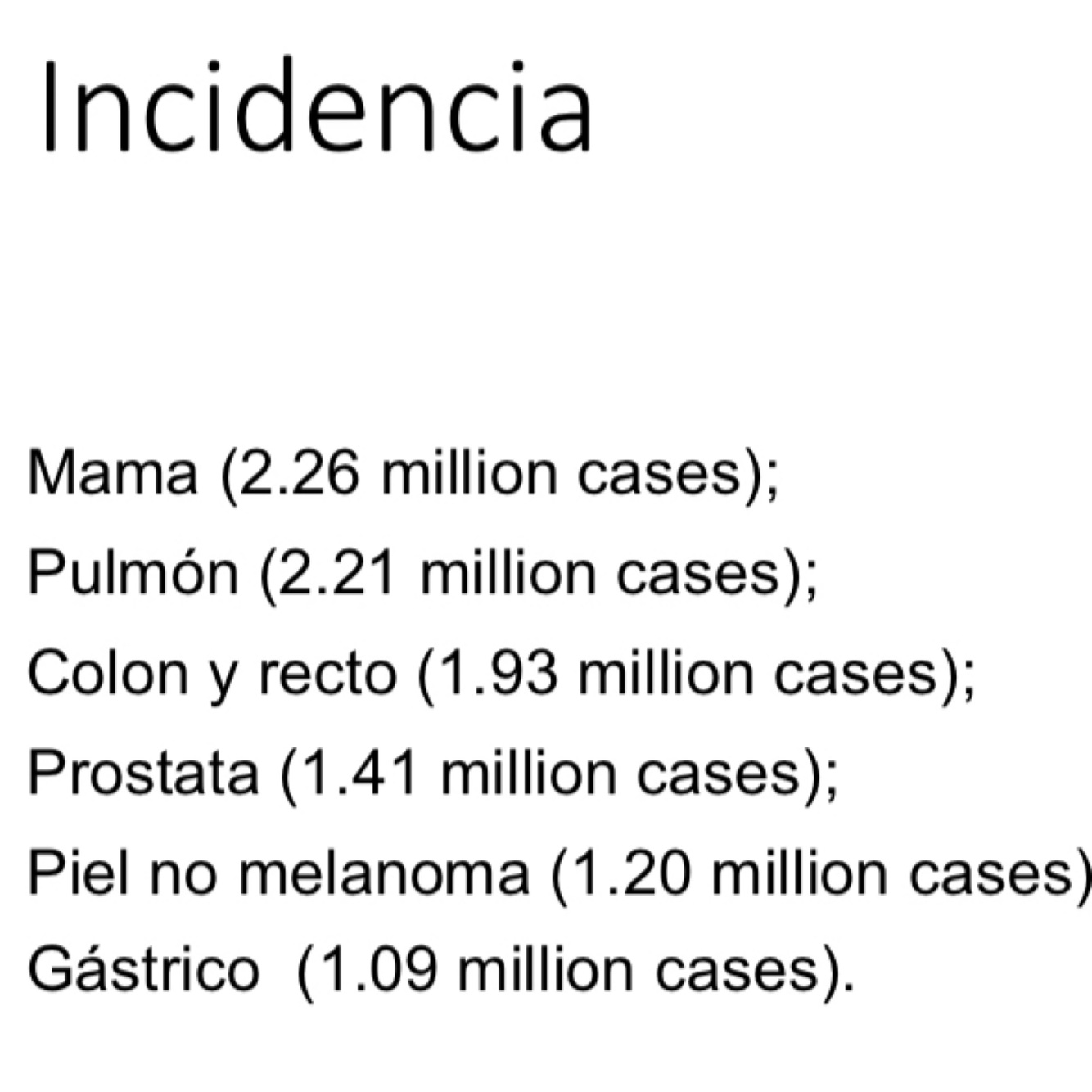 Top 3 cánceres con la incidencia más alta