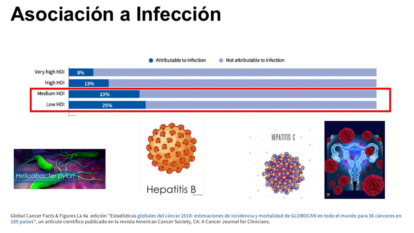 ¿Qué porcentaje de cánceres es atribuible a infecciones en países de medio y bajo desarrollo?