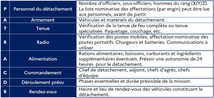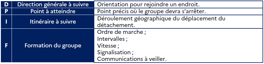 (en prévision de déplacement d’un groupe ou d’une colonne)