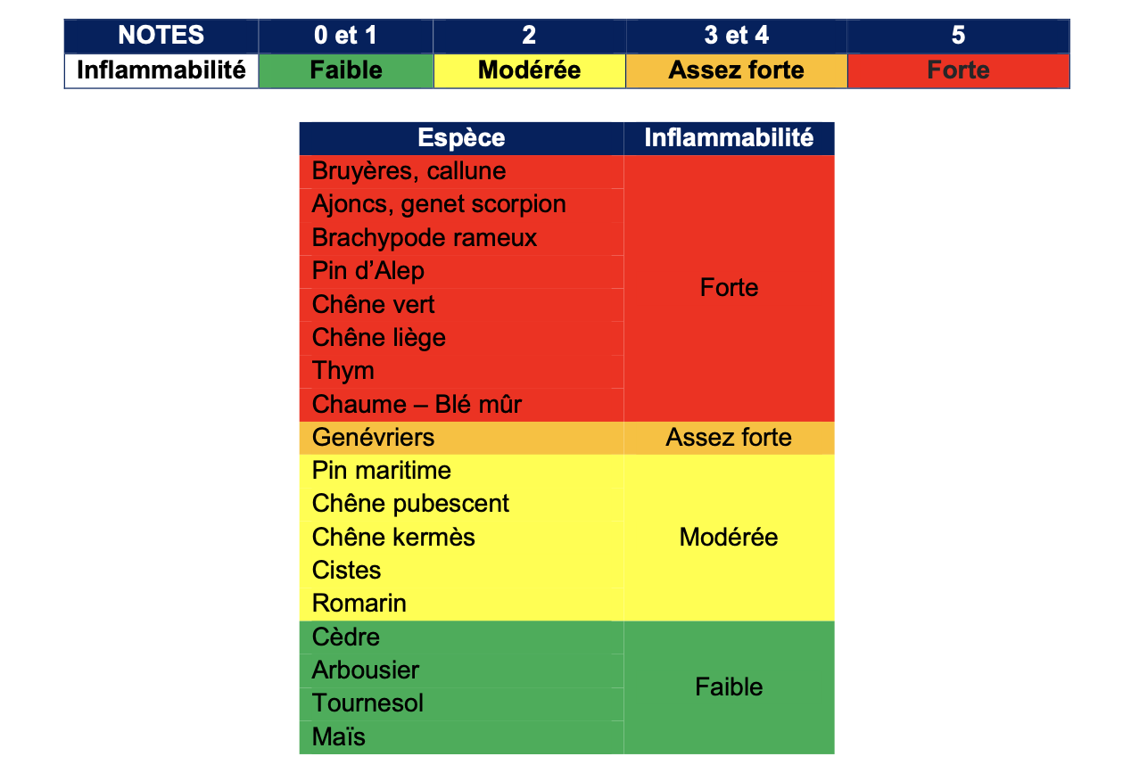 La strate arbustive : d’inflammabilité moyenne mais présentant parfois une combustibilité importante,