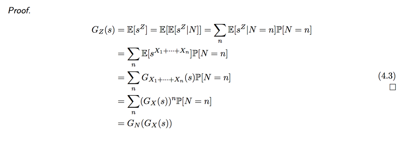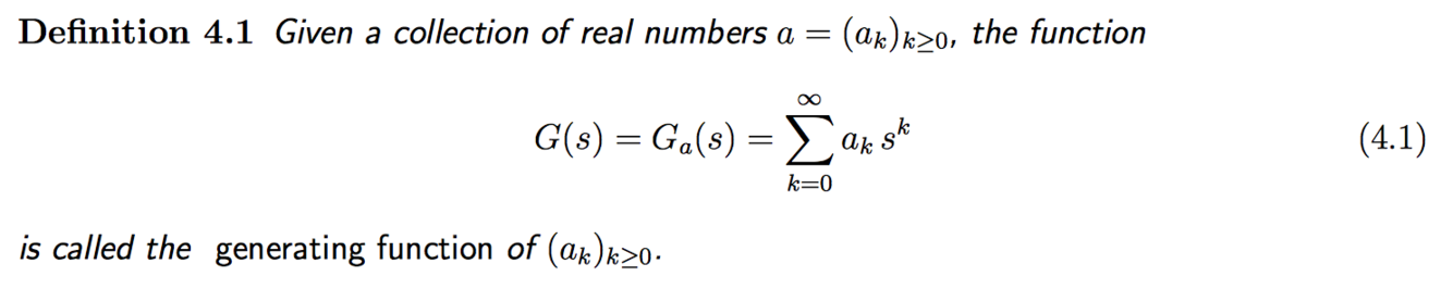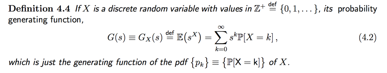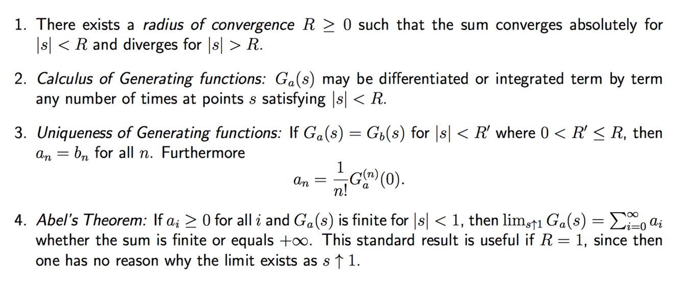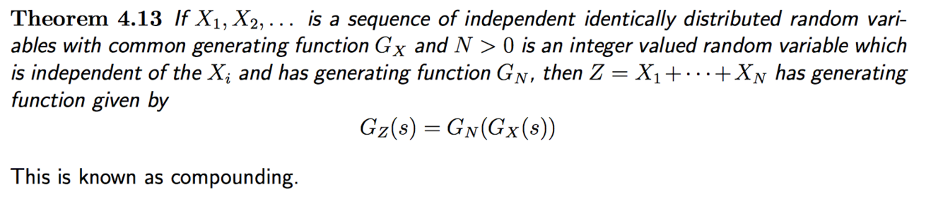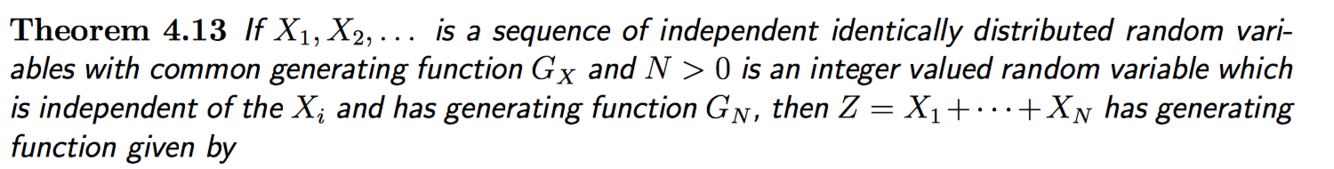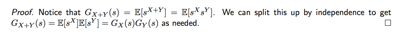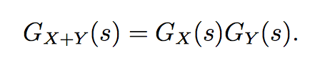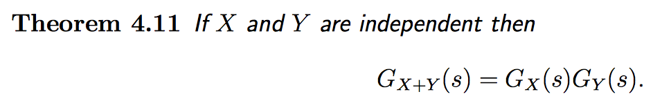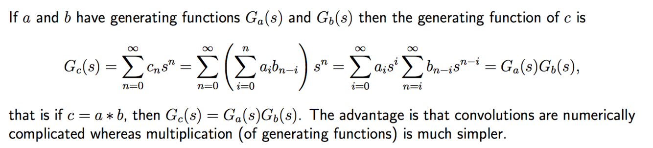 What is the generating function of c when a and b have generating function Ga(s) and Gb(s)?