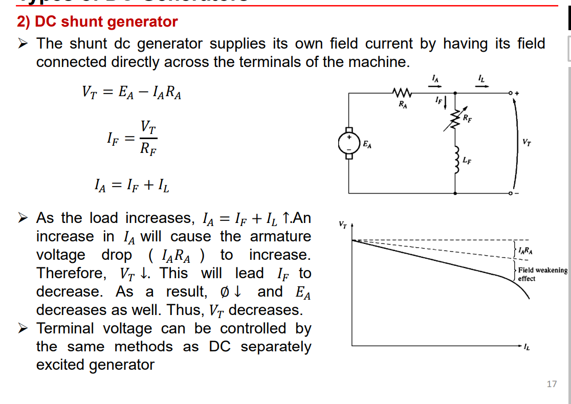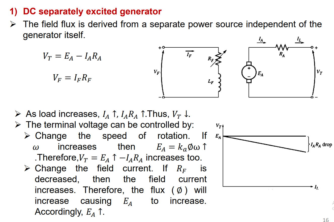 Draw the seperately excited generator and explain how we can control VT and how it works?