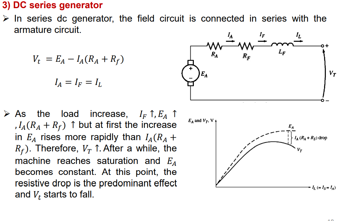 What are the Eqns of the Voltage(EA) for the DC generator?