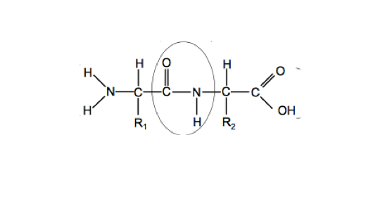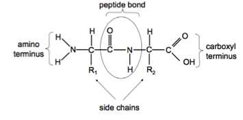 Describe the key features of this peptide (amino terminus, carboxyl terminus, peptide bond & side chain)