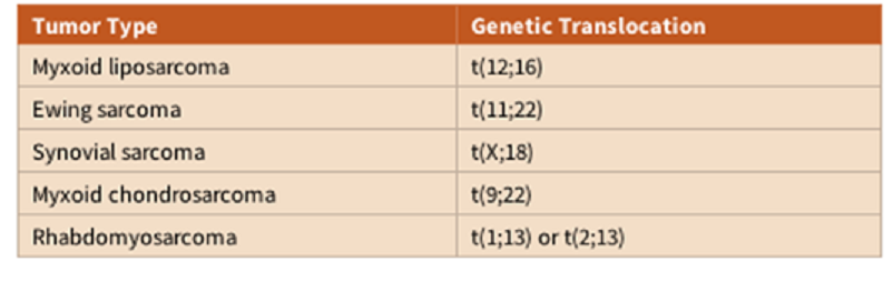 • Most commonly described translocation t(16;17)(q22;p13) leading to juxtaposition of promoter region CDH11 on 16q22