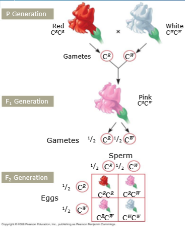 The phenotype of F1 hybrids is between the phenotypes of the 2 parental varieties