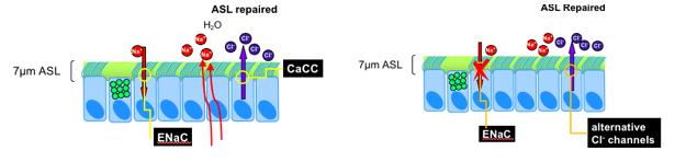 Name 2 pharmacological approches for fixing the ASL in patients with CF