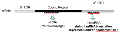 Short dsRNA (siRNA) binds to a specific part of an mRNA coding region –> Causing mRNA cleavage
