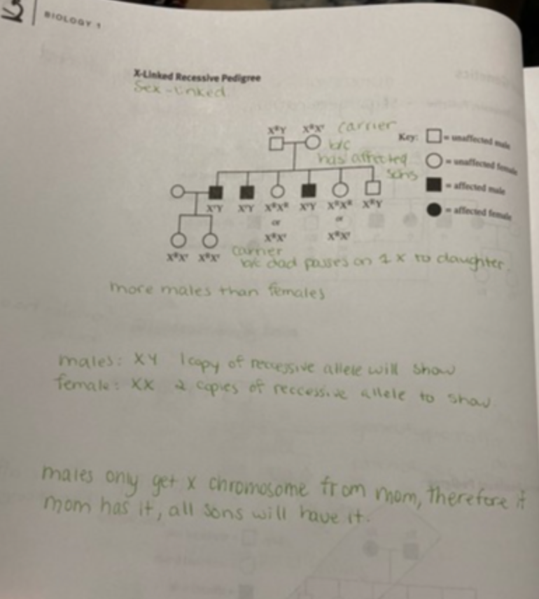 What does a sex-linked pedigree look like?