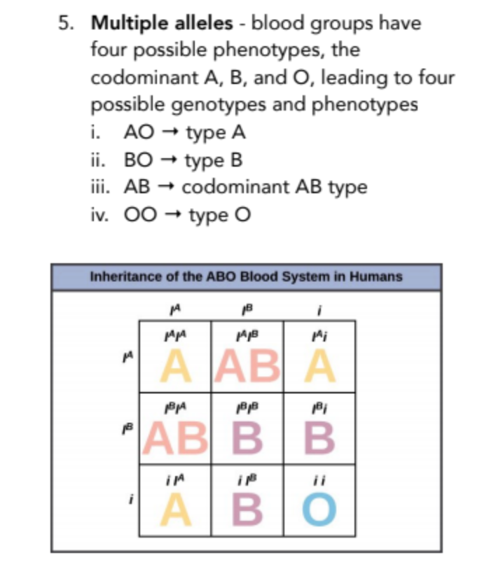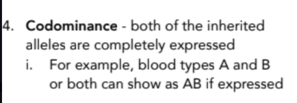 Ex. blood type AB has dominant A and dominant B